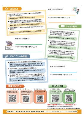 埼玉県教育委員会が作成した、児童のネット・トラブルを防ぐための「保護者向けリーフレット」です。