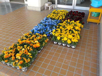 環境委員会の児童が、校舎南側の花壇にパンジーを植えてくれました。モノトーンな風景になりがちなこれからの季節に、色とりどりのパンジーの花があると、心が安らぎますね。