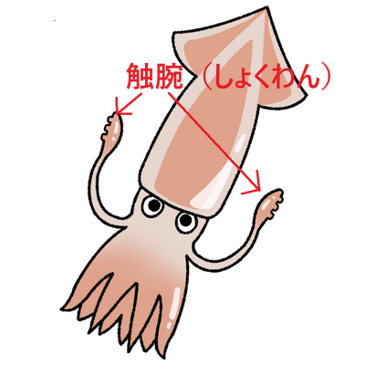 「8本」の足に、「2本の触腕(しょくわん)」と言われる腕があり、あわせると「10本」なのですが、足の数は「8本」だそうです!