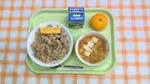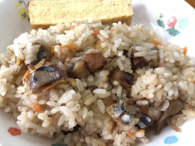 今日の給食は「さんまご飯・だし巻き卵・あさりの味噌汁・みかん・牛乳」でした。
