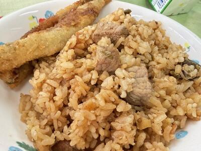 きょうのメニューは「東松山やきとりごはん・ししゃもフライ・かき玉汁・牛乳」でした。