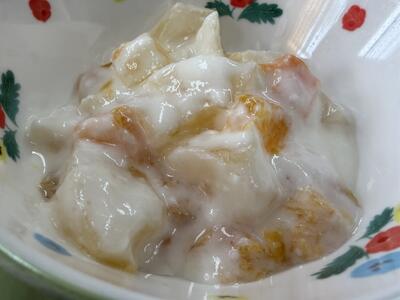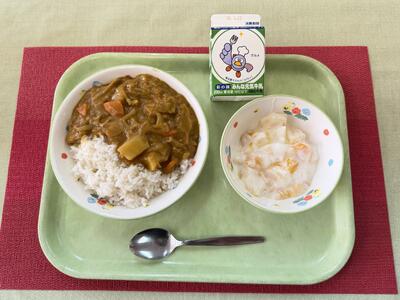 今日のメニューは「カレーライス・フルーツヨーグルト・牛乳」でした。