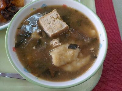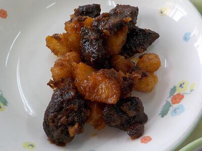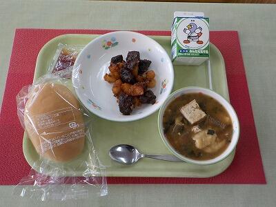 今日のメニューは「すいとん・コッペパン・いちごジャム・くじらとおじゃがのケチャップソース・牛乳」でした。