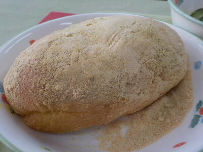 今日は、カレーライスに次いで子供たちから人気の「揚げパン」でした。そして、「揚げパン」の中でも一番人気の「きな粉」の揚げパンでした。