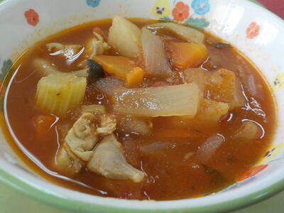 今日のメニューは「きな粉揚げパン・鶏肉のトマト煮・イタリアンサラダ・牛乳」でした。