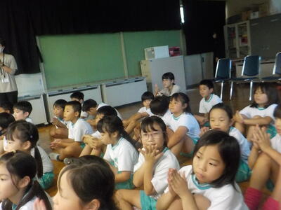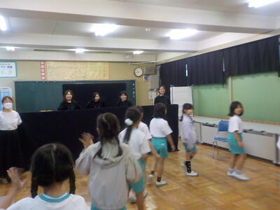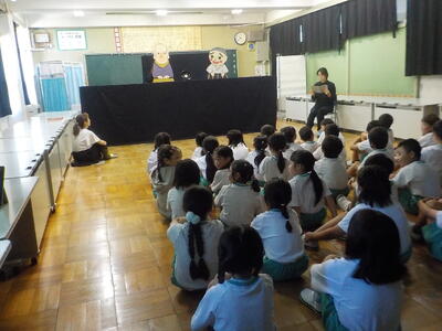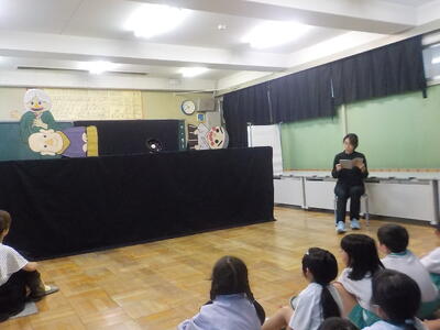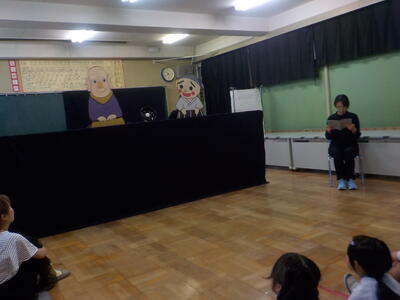 大型紙芝居とペープサートを使った2つのお話に、子どもたちはぐっと引き込まれて、物語の世界を楽しんでいました😊
