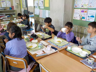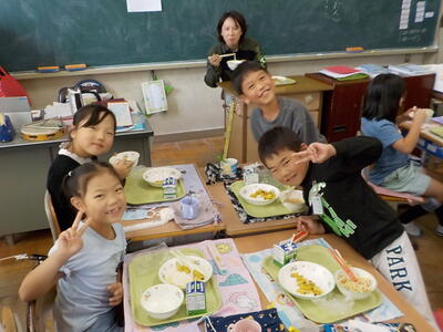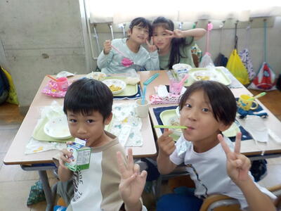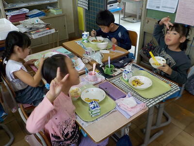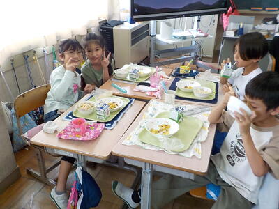 10/24 2年生★給食の時間のガッツポーズ