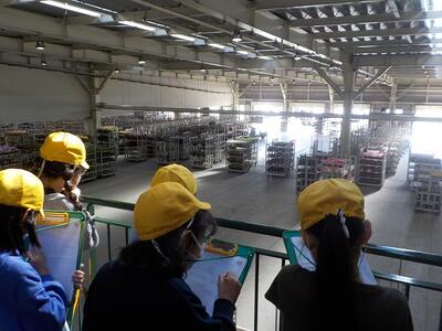 まず見学したのは、「鴻巣フラワーセンター」です。ここでは実際の競りの様子を見学することができました。花があっという間に競り落とされていく様子や、競りにかけられる花が自動で運ばれる様子を、子どもたちは食い入るように見ていました。