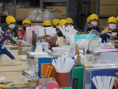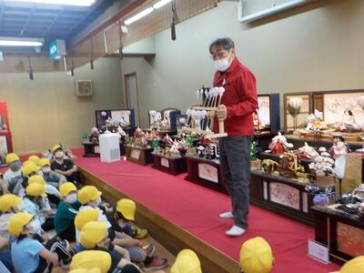 次に訪れたのは、鴻巣市が誇るひな人形のお店「マル武人形」。ここではひな人形の製作工程を間近で見学しました。また、鴻巣市におけるひな人形の歴史についてもお話しいただきました。大人が聞いても初めて知る内容も多く、子ども達も先生達もうなずきながら聞いていました。