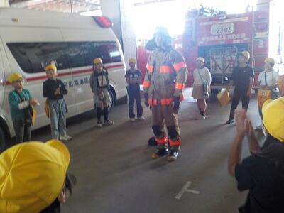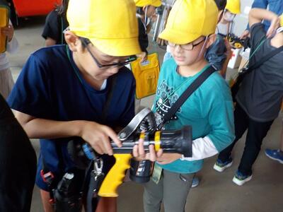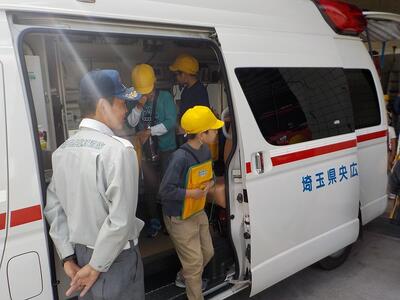 最後に訪れたのは「県央広域消防本部」。普段は入ることのできない施設内を案内していただき、食堂や仮眠室など24時間体制の生活空間も見学しました。さらに、消防車の装備を実際に触らせてもらったり、救急車の中を見せてもらったりと、子どもたちは目を輝かせていました。