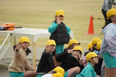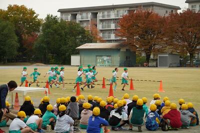 来週の「校内持久走大会」に向けて、3,4年生が「試走」を行いました。少し寒いですが、風が無いので「試走日和り」のようです。校庭に、子供たちの応援する声が響いています。