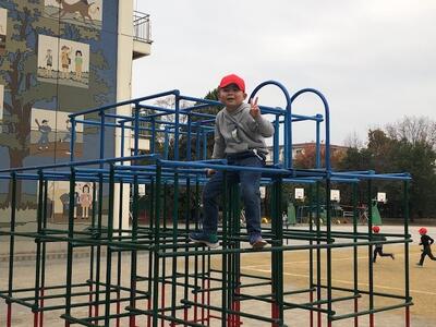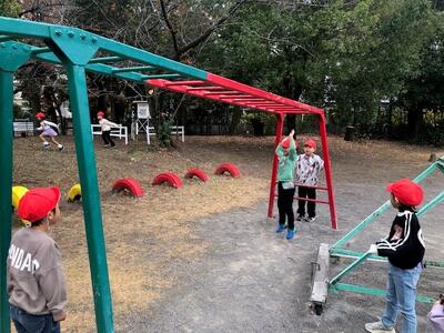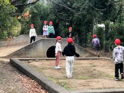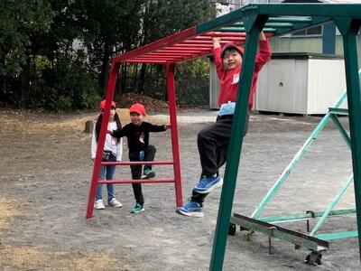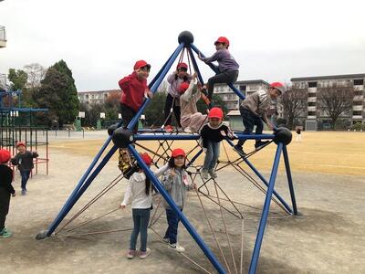 校庭では、1年生たちが元気に遊んでいます(^^)/。