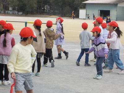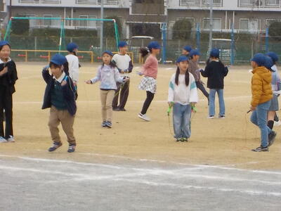 1,2年生たちが「短縄跳び」の練習を始めました。「縄跳び」は『冬の季語』といえるくらい、冬の定番の活動です。頑張って練習し、自分のできる技を増やしていきましょうね(^^)/