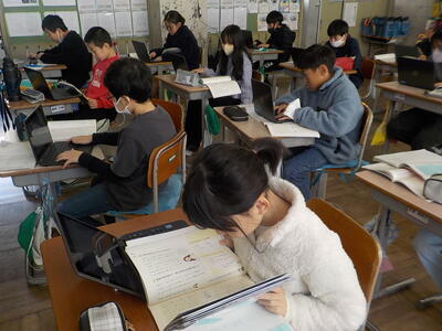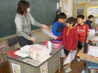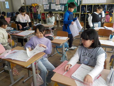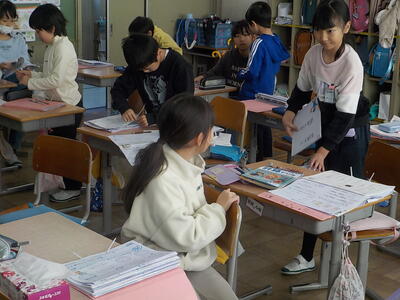 3年生は、「テスト返し・直し」をやっていました。隣のクラスは、図書室で冬休みに借りる本を選んでいました。