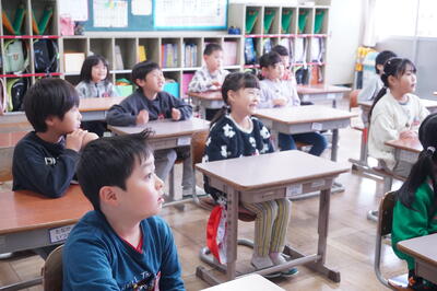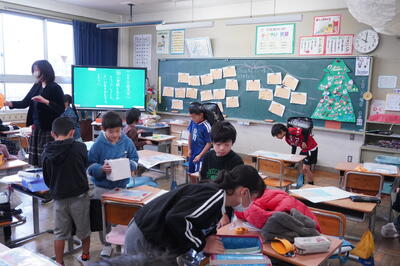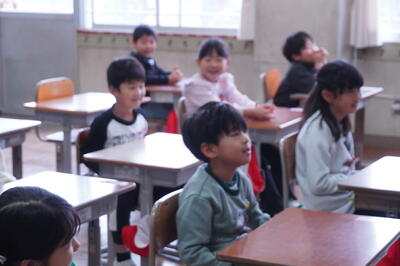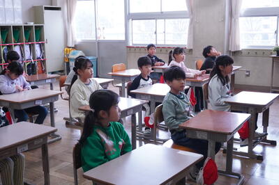 1年生の教室では、終業式の校長式辞の内容を、子供たちに確認してくれていました。1年生たちには、ちょっと難しい話をしてしまうことがあるので、とっても有難いです。