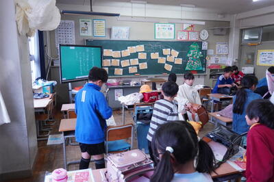 各教室では、冬休みの過ごし方のお話を聞いたり、先生から通知表を受け取ったりしています。通知表は、ちょっとドキドキしますね。さて、成績は期待どおりだったかな?通知表が「次の頑張り」につながることを願います!