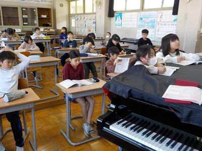 5時間目、校舎を回っていると音楽室から「エーデルワイス♪」が聞えてきました。オーストリアの祖国愛を表した綺麗でやさしいメロディーを、子供たちは味わいながら聴き入っていました😑。次回からリコーダーでの練習を行うようです。