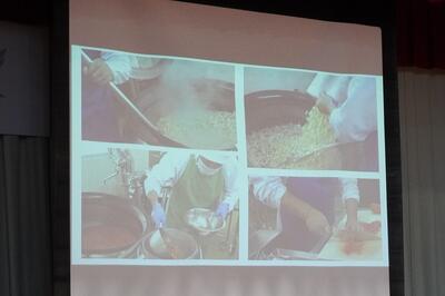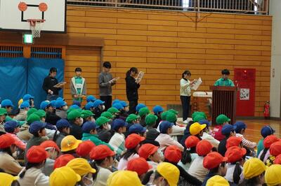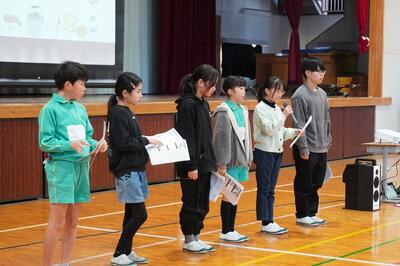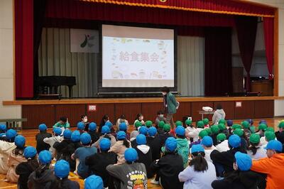 運営は給食委員会の児童が行い、「給食室の一日」という本を使っての調理員さんたちの一日のお仕事の紹介や、「赤二小★人気給食ランキング」の結果発表をしてくれました。