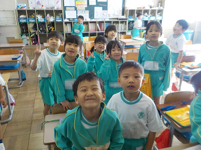 1時間目休みの1、2年生の教室です。