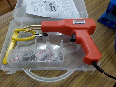 ・ボンドだけだと接合が弱いので、「プラスティック溶接機」と溶着でしっかりと直しています。
