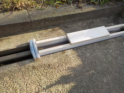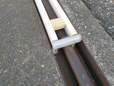 裏門門扉の開け閉めの際に、滑車が戸当たりにあたって「大きな音📣」が出ないように、「柔らかな戸当たり」を作りました。学校にあった部材で作ったので、今一つですが、効果はあるようです。(ちょっと作り直しが必要ですが…)