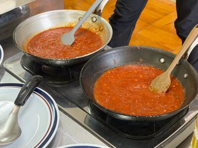 修了式のお昼は、「納め会がわり」に、ちょっといいお昼をいただくことが多いのですが、シェフに学校で作っていただくという「富豪しかできないような経験」をした贅沢な昼食会でした。