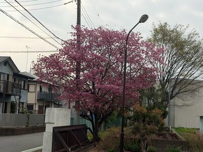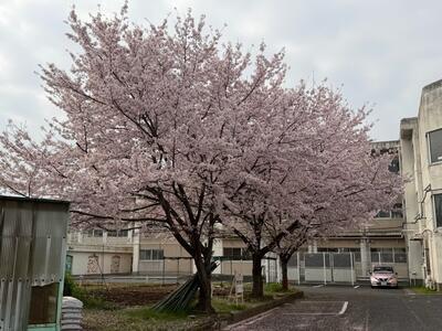 西側の道路を歩いていた方から「道路側に出ていたサクラを切ってしまったんですね😳…。」と声を掛けていただきました。この時期に道路にせり出した満開の桜の下を通るのを楽しみにされていたようで、ちょっと残念そうでした。伸びた枝が電線にかかってしまったりトラックなどの背の高い車の通行に差し障りが出たりしていたので、昨年、剪定してしまいました…。