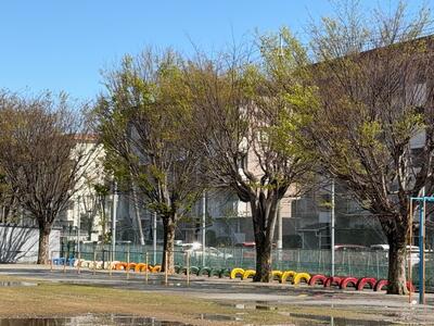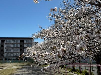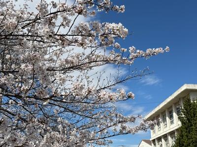 新年度2日目。風が強く、学年園のサクラの花びらが一気に散ってしまい、新芽の緑が目立つ木もでてきました。けれども、校庭西側のサクラは今が見頃です。やはり入学式の頃には葉桜になっている可能性が高そうなので、もしも『咲き誇るサクラの前で写真を…』という方は今週末がよいかもしれません。
