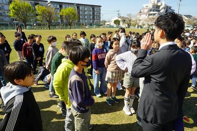 つづいて「始業式」では、担任発表等を行いました。担任発表の時には「喜びの声とかは、心の中で出しましょう。」と言っておきましたが、思わず「よし!😁」と声が漏れてしまう子供たちもいました。今日の出会いを大切にし、1年間頑張っていきましょうね!